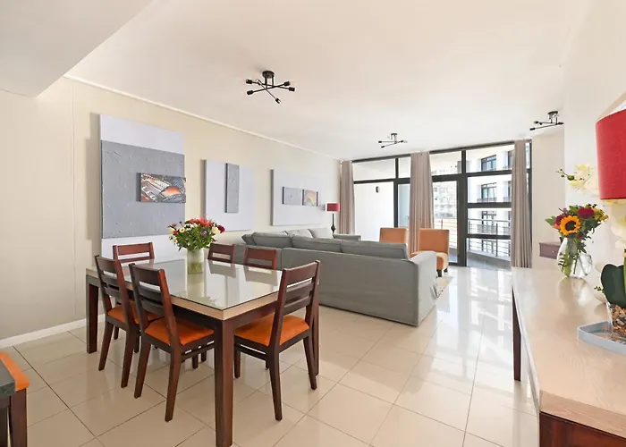 De Bo-Kaap wijk ligt op 19 minuten te voet vandaan en de luchthaven Kaapstad Internasionale Lughawe bevindt zich op 20 km afstand van dit appartement van 85 m². Op 2 km van het 2-badkamer appartement vindt u de Leeuwenkop.